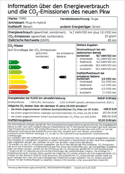 Kuga 2,5l. PHEV Active -Automatic-