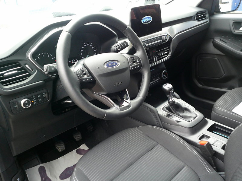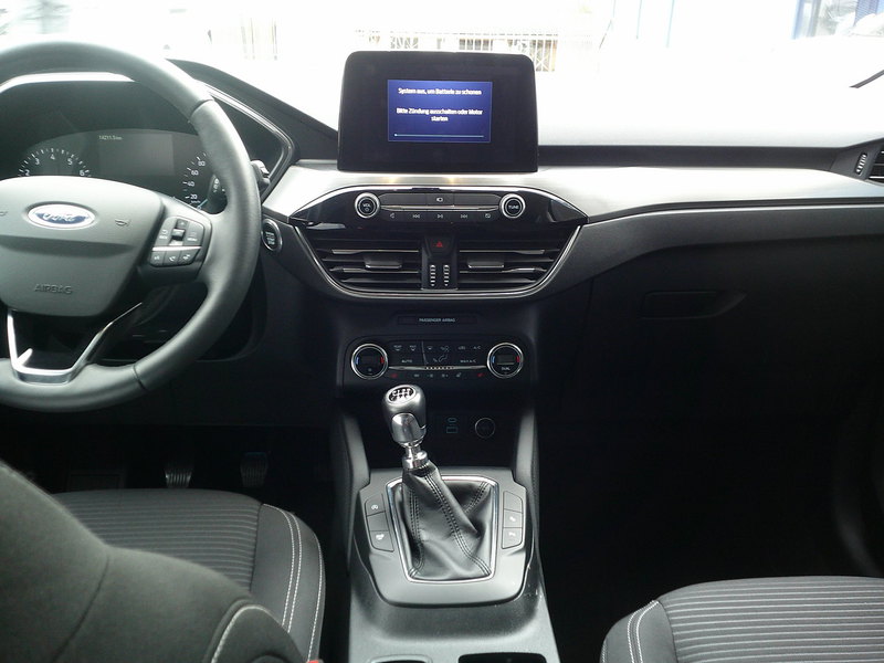 Front-, Kopf- und Schulterairbags, Klimaanlage, Ford Audio System / Navigationssystem mit Sync III Apple CarPlay, 2x USB, Touchscreen, Rückfahrkamera, Freisprecheinrichtung/ USB, Bordcomputer, Start Stopp System, Ford Easy Fuel, Schaltpunktanzeige, Polster Leder/Velur, Lederschaltknauf, Leichtmetallfelgen, Bordcomputer, Kollisionsvermeidungssystem, Lendenwirbelstütze Fahrerseite